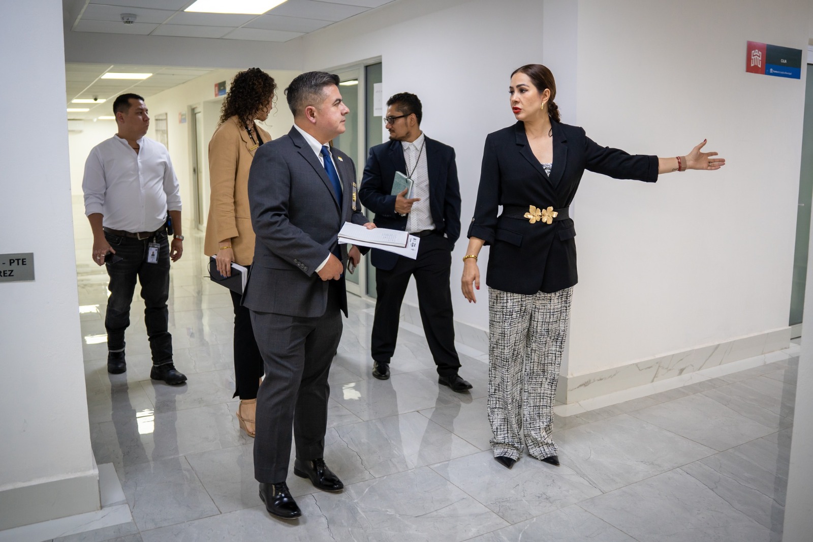 Durante el recorrido, Martha Rodríguez Romero, directora del Centro de Justicia Municipal, presentó a los comisionados los procesos institucionales, espacios operativos y programas estratégicos implementados para fortalecer la atención ciudadana, el acceso a la justicia y la prevención del delito.