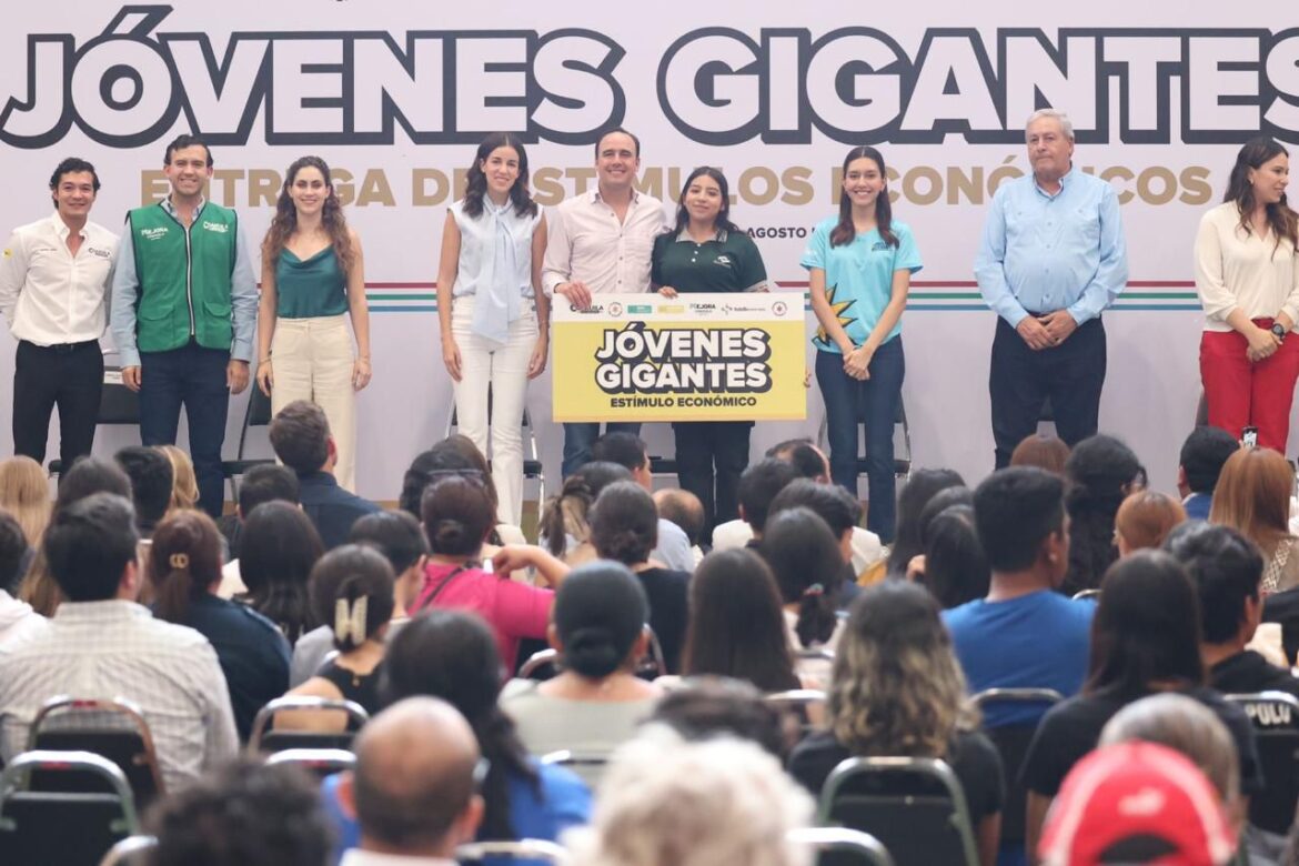 “Cerramos el día festejando en grande el día Internacional de la Juventud, con un gran evento donde hicimos entrega de los apoyos escolares “Jóvenes Gigantes” a estudiantes de secundaria, preparatoria y universidad, con los que van a poder fortalecer sus estudios. ¡Estamos construyendo a pasos de gigante una juventud fuerte y echada pa’ delante!”, destacó.