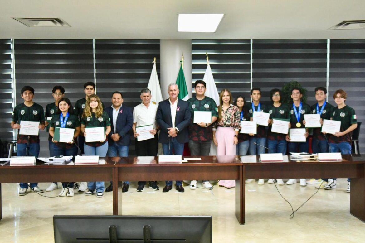 En primer término, el Presidente Municipal y el Cabildo reconocieron a los integrantes de la selección Nacional de Robótica, representada por el equipo “Cerbotics”, del Colegio Cervantes, por su destacada participación en Atenas, Grecia, donde obtuvieron la medalla de oro “Albert Einstein Award for FIRST Global Internacional Excellence”, en el FIRST Global Challenge 2024.
