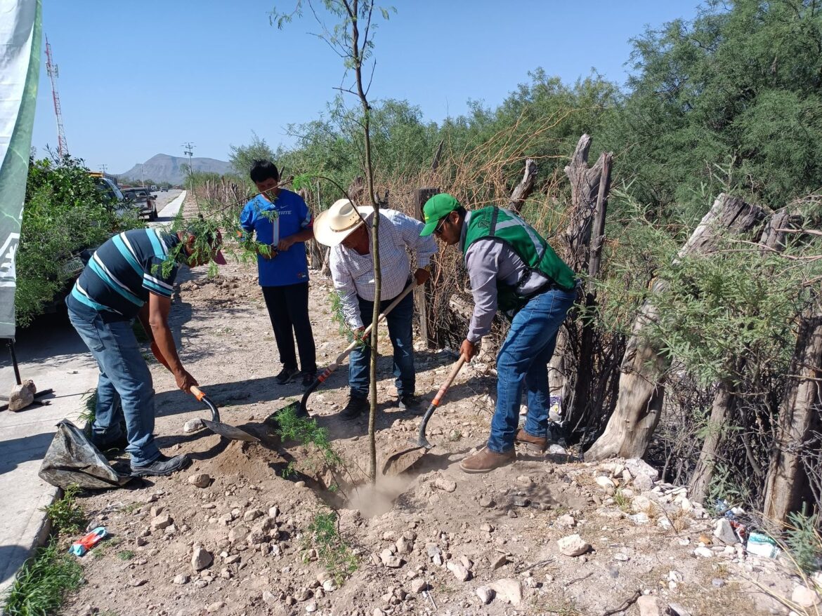 Mencionó que las especies plantadas son adecuadas para el clima de la región, entre ellas se encuentran el huizache, mezquite y lágrima de San Pedro, así como árboles frutales que fueron distribuidos en las seis comunidades, especies que ayudan a mejorar el paisaje y proporcionan beneficios adicionales como sombra, alimento y refugio para la fauna local.