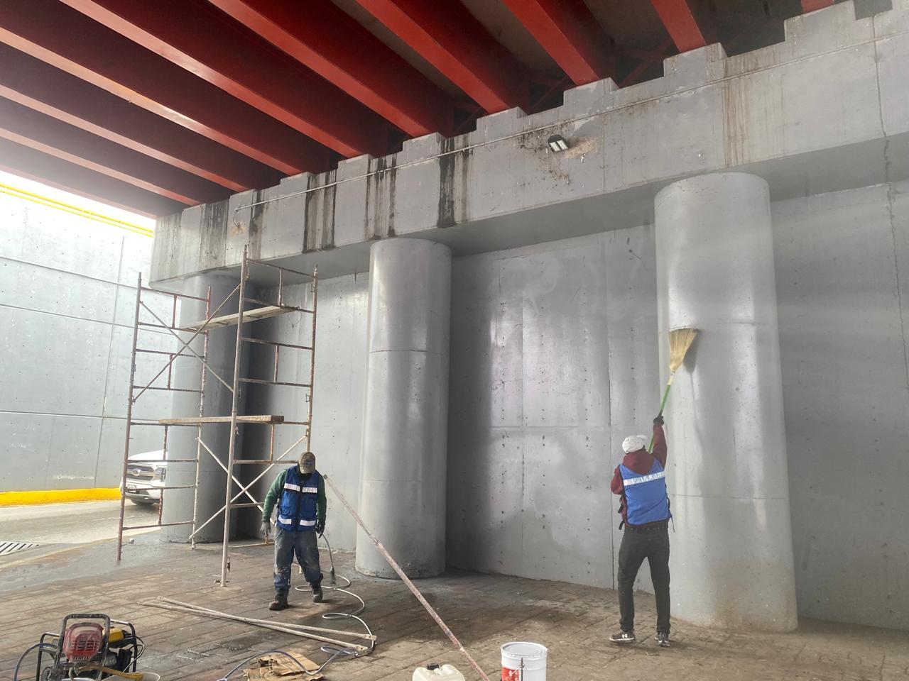Como parte de las acciones permanentes de mantenimiento y conservación de la infraestructura urbana, personal del Sistema Integral de Mantenimiento Vial (SIMV) de Torreón, lleva a cabo la aplicación de más de 5 mil metros cuadrados de pintura antigraffiti en muros de puentes vehiculares, con el objetivo de prolongar la vida útil de estas estructuras.
