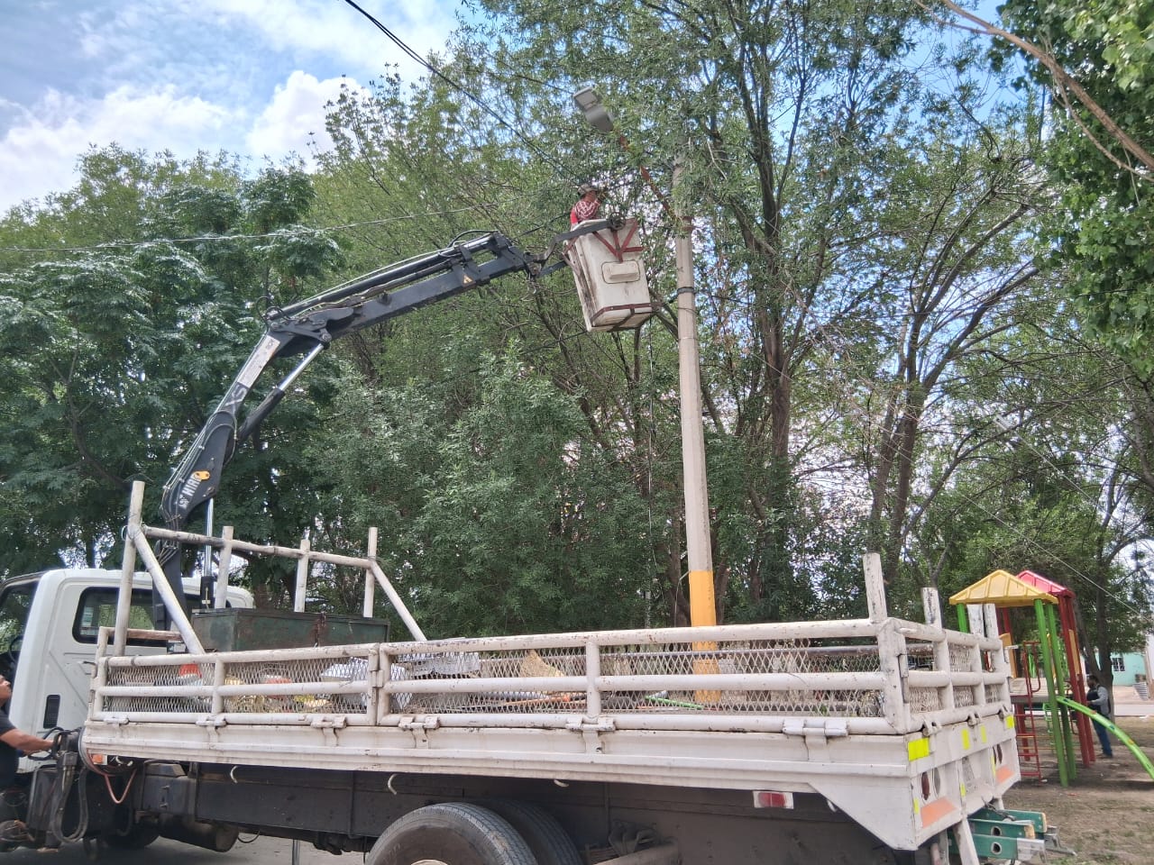 Además, se realizó una importante labor de mantenimiento en las áreas verdes con poda y limpieza general tanto en la plaza como en calles aledañas.