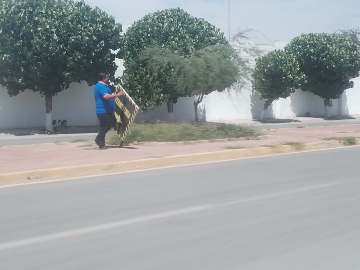 Por obstrucción del camellón, personal de la Dirección de Plazas y Mercados retiró algunos letreros publicitarios en la colonia Residencial Senderos, por afectar la visibilidad a los peatones y automovilistas.