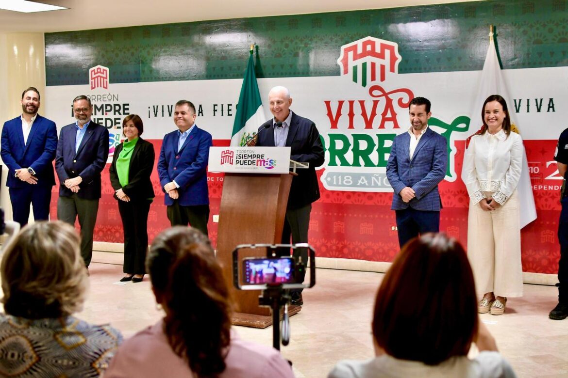 Dijo que el sábado 13 se realizará el acto cívico por el aniversario de la Gesta Heroica de los Niños héroes de Chapultepec; el lunes 15 de septiembre la Sesión Solemne de Cabildo por el 118 aniversario de Torreón, donde se hará la entrega de preseas a la ciudadanía distinguida, y en la noche el tradicional grito de Independencia.