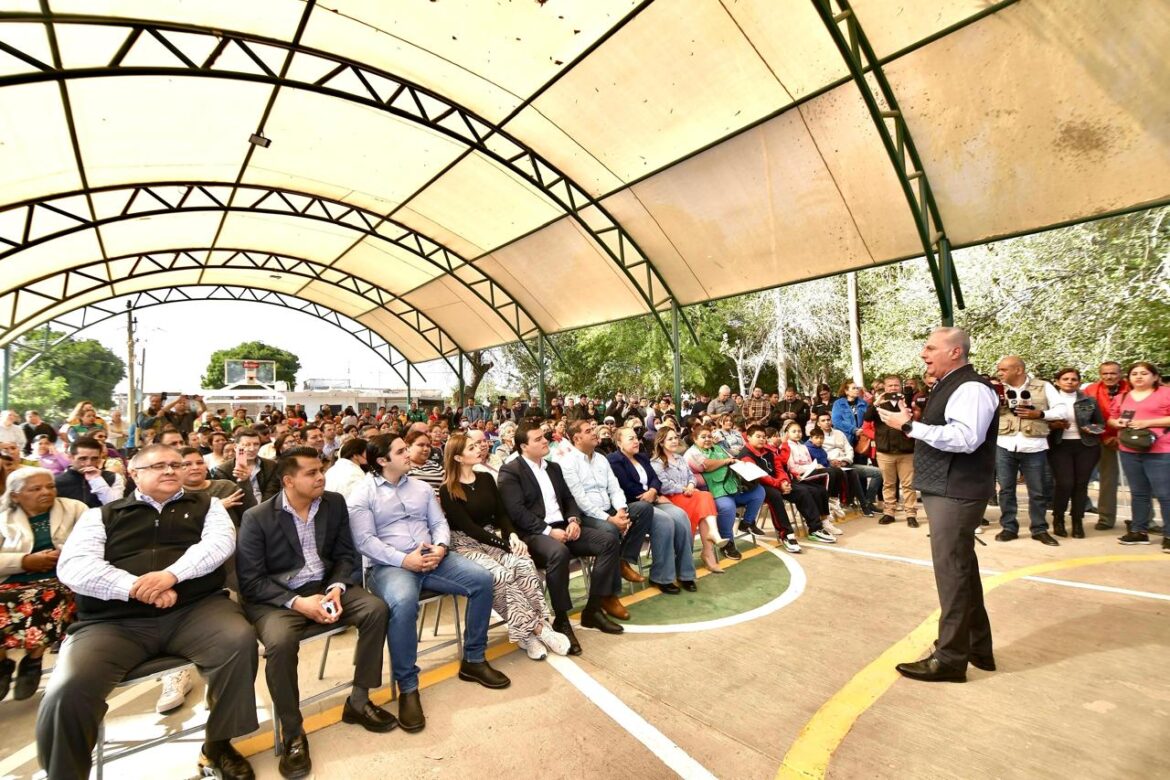 Con una inversión de alrededor de 1 millón 850 mil pesos, este jueves el alcalde Román Alberto Cepeda González inauguró una techumbre en beneficio de los habitantes del ejido La Paz y vecinos de sectores aledaños, con quienes además reforzó su compromiso de continuar llevando los programas municipales para mejorar la calidad de vida de su comunidad.