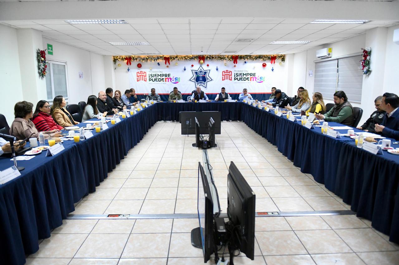 Rumbo al cierre de año, dijo, las diferentes corporaciones reforzarán las acciones para mantener el orden y la paz, y trabajarán de manera coordinada con el gobernador Manolo Jiménez Salinas para proteger a las familias torreonenses.