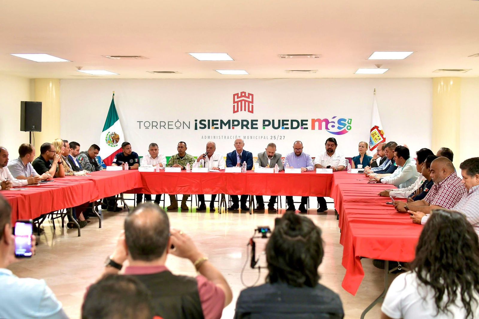 Estuvieron también: General brigadier de Estado Mayor Edilberto Jasso Godoy, comandante del Mando Especial de La Laguna (MEL); Eduardo Olmos Castro, secretario del Ayuntamiento de Torreón; comisario Alfredo Flores Originales, director de Seguridad Pública Municipal; Luis Alberto Morales Cortés, director general de Vialidad y Movilidad Urbana; Alicia Faz Dávila, directora Tránsito y Vialidad; Roberto Bernal Gómez, regidor presidente de la Comisión de Salud Municipal; José Riveroll Duarte, director de Salud Municipal.