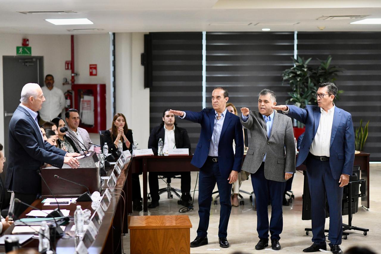 El alcalde Román Alberto Cepeda González tomó protesta a Eduardo Olmos Castro como secretario del Ayuntamiento; Óscar Gerardo Luján Fernández como nuevo titular de la Contraloría Municipal; y Javier Lechuga Jiménez como Tesorero Municipal, designaciones que fueron previamente aprobadas de manera unánime durante la Décima Quinta Sesión Ordinaria de Cabildo que se realizó este viernes.