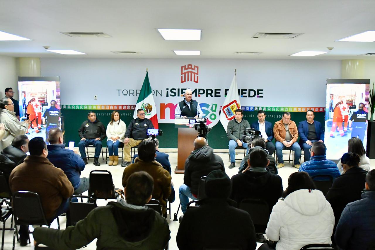 Estuvieron presentes también: José Elías Ganem Guerrero, Secretario del Ayuntamiento de Torreón; Fernando Ariel Martínez Mendoza, Jefe de Gabinete; Comisario César Antonio Perales Esparza, Director General de Seguridad Pública Municipal; Marlene Martínez Valdés, Directora DIF Torreón; Héctor Iván Estrada Baca, Director General de Desarrollo Social; Jorge Luis Juárez Llanas, Director de Protección Civil y Bomberos; Raúl Alejandro Garza del Valle, Director de Atención Ciudadana.