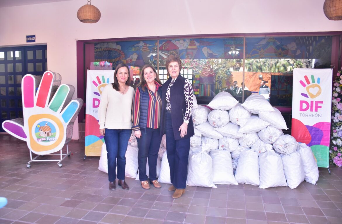 La Presidenta Honoraria del Sistema para el Desarrollo Integral de la Familia (DIF) Torreón, Selina Bremer de Cepeda, hizo entrega de 1.5 toneladas de tapitas de plástico a la asociación civil “Encendamos una luz”, quienes a través del albergue Casa Feliz brindan asistencia y ayuda a niños y jóvenes con cáncer y otras enfermedades semejantes.