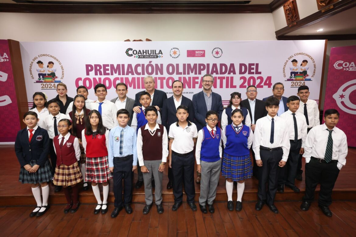 El Gobernador Manolo Jiménez Salinas premió a las niñas y niños ganadores de la Olimpiada del Conocimiento Infantil 2024, en ceremonia en la que destacó que Coahuila tiene presente y futuro gracias a la brillante niñez y juventud de todas las regiones de la entidad.